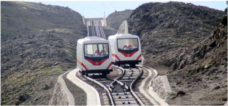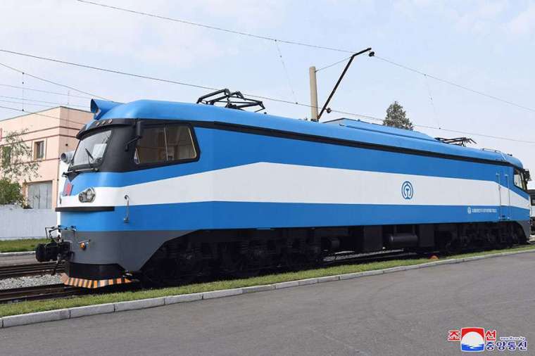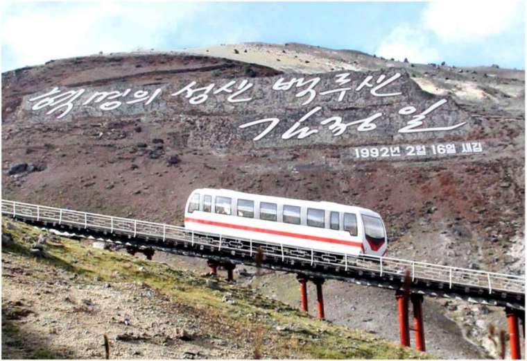 — Novo elevador ferroviário. Será usado para transporte em encostas muito íngremes. Na foto, testes realizados no Monte Paektu.