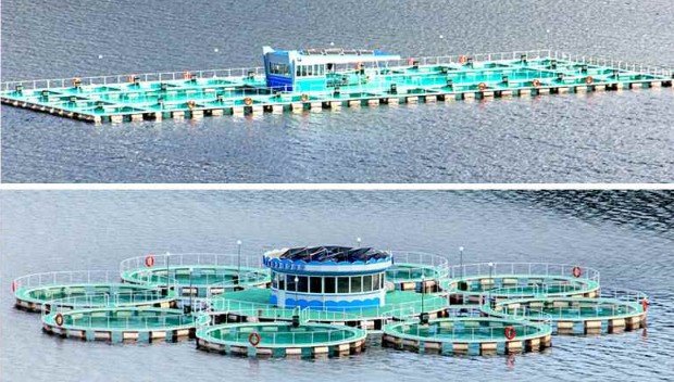 Fazenda de peixes na cidade de Kujang:
