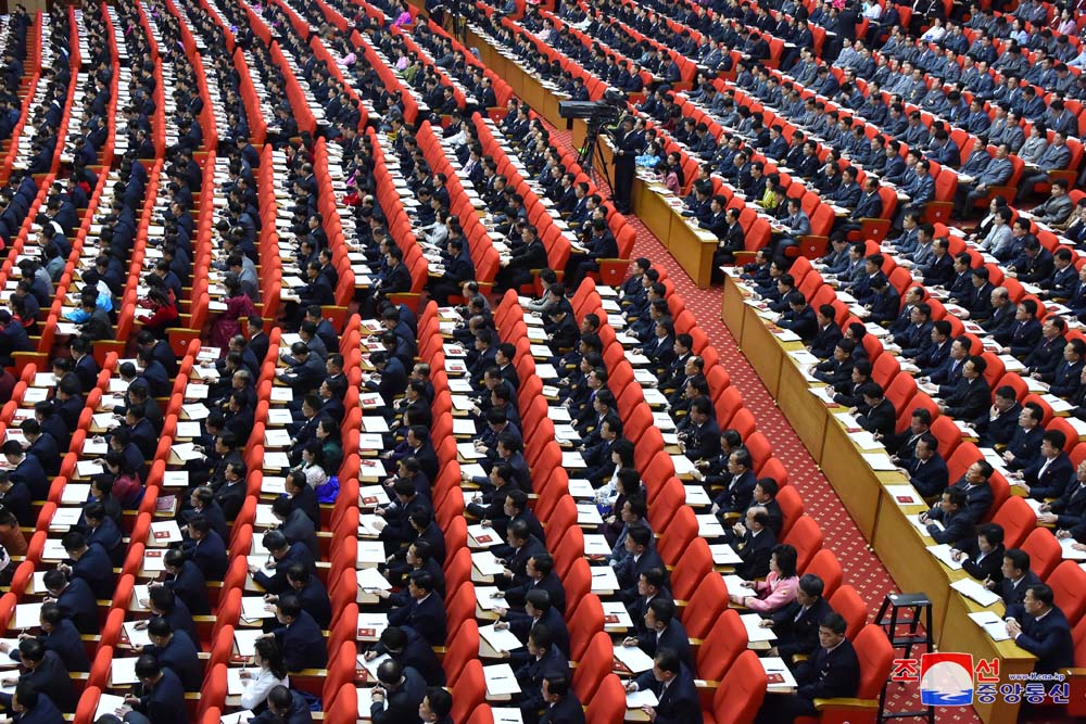 Em seu discurso, o líder coreano abriu os trabalhos do 8º Congresso e declarou que se mantém fiel ao socialismo Juche do Presidente Kim Il Sung e do Dirigente Kim Jong Il, reforçando a linha autêntica e revolucionária da RPDC, que não se dobrou ao reformismo e ao revisionismo.
